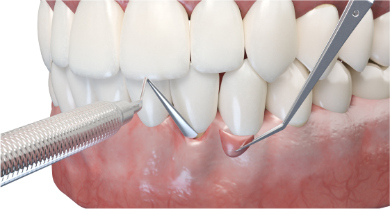 잇몸을 열고 염증조직과 치석을 제거하고 불규칙한 치조골을 다듬은 후 잇몸을 다시 원래 자리로 봉합해 주는 치료법 입니다. 치주질환의 근본적인 원인을 제거한다는 점에서 유용합니다.